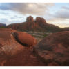 Cathedral Rock framed by foreground red rock in Sedona, Arizona. Printed on very high end Hahnemuehle fine art paper for extraordinary depth, clarity, and archival properties.